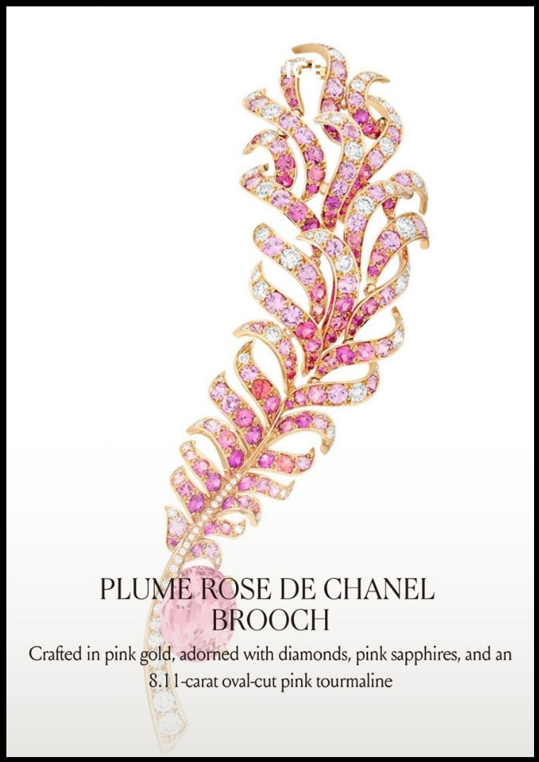 INSPIRATION;Inspired by “PLUME ROSE DE CHANEL” brooch in pink gold, diamonds, pink sapphires and pink tourmaline.